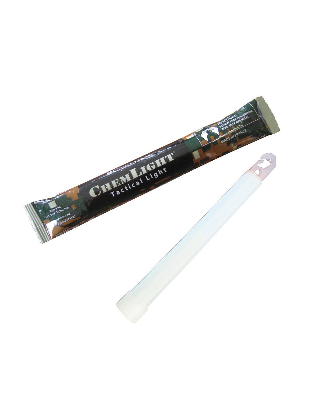 Les bâtons lumineux ChemLight® sont des éclairages éphémères utilisés par les Forces de l'Ordre, l'Armée de Terre, l'Armée de l'Air et la Marine Nationale pour éclairer (lecture de cartes, illumination en milieu sous-marin...) ou effectuer un marquage par code couleur (baliser une voie, identifier une issue de secours, un danger ou une zone à risque)