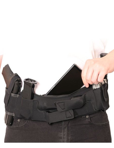 Ajustable par bandes agrippantes, vous pouvez porter de nombreux accessoires en toute discrétion sous votre veste.