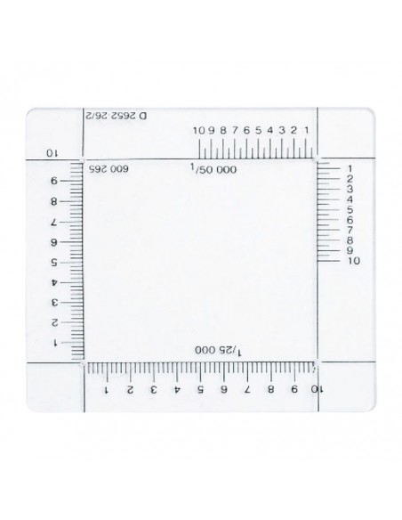 Grâce à cette équerre vous pourrez évaluer des distances sur une carte topographique allant de 1/25000 à 1/50000.
