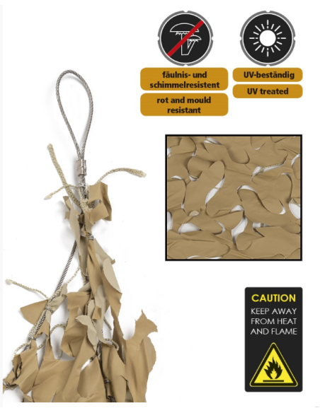 Filet de camouflage renforcé CamoSystems (Câble Acier) - 80% d'ombrage - Beige