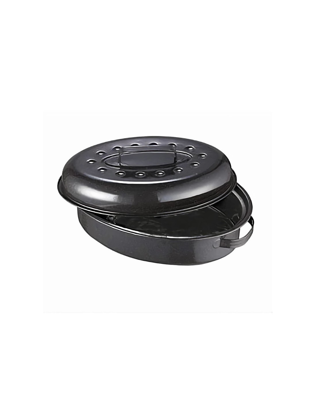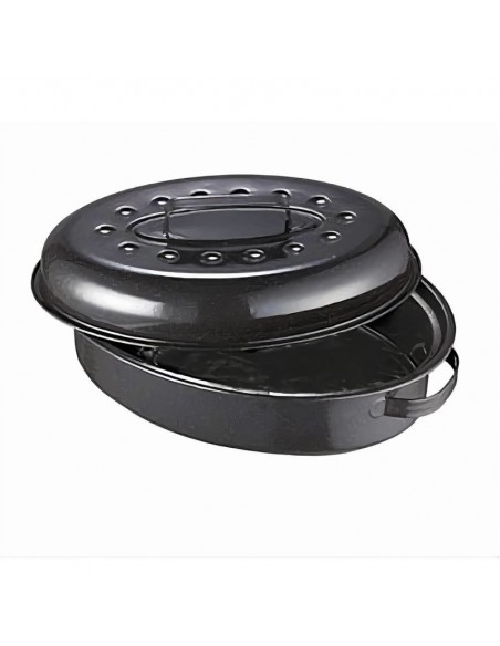 Cocotte de couleur noire en acier émaillé, adaptée à la cuisson solaire.