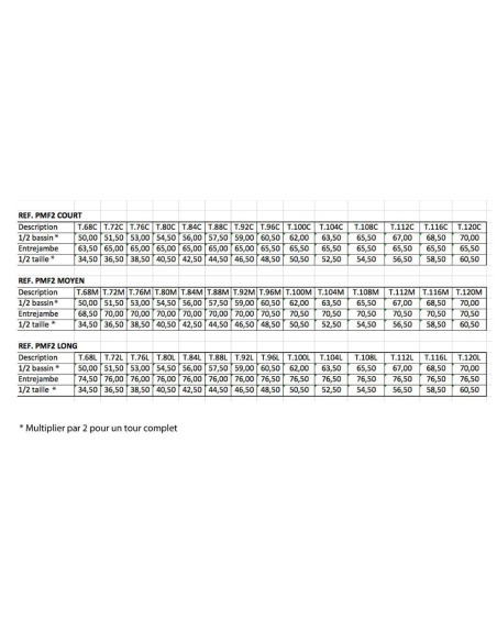 Longueur entrejambes (peut varier de 1 ou 2 cm selon la taille et le fabricant)