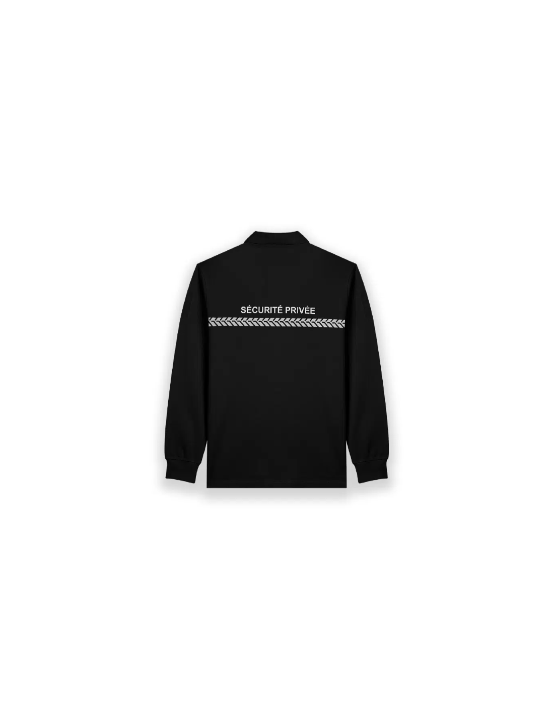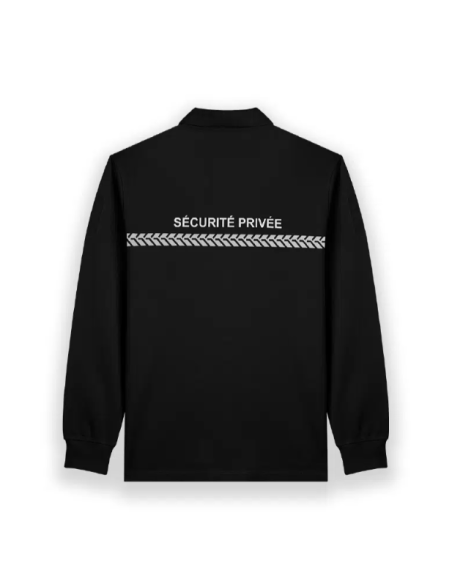 En effet, ce polo à manches longues, de couleur noire, est doté d’une bande grise et d’un marquage “SÉCURITÉ PRIVÉE” sur la poitrine. Par ailleurs, un logo rétroréfléchissant a été ajouté au dos pour une visibilité accrue.