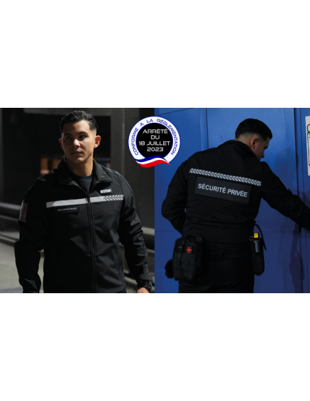 - Auto-agrippant boucle sur la poitrine avec badge « SÉCURITÉ PRIVÉE » rétroréfléchissant