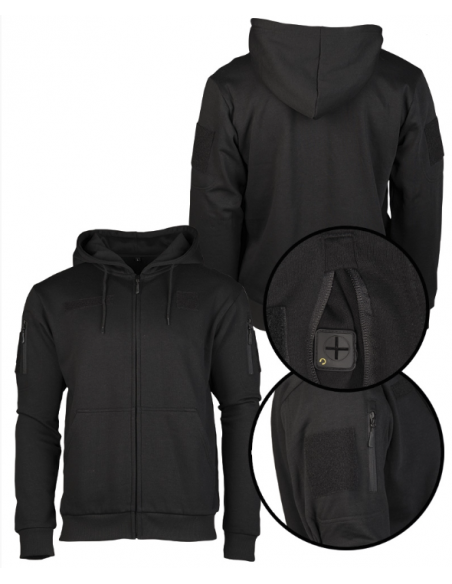 Ce sweat Shirt tactique à capuche est parfait pour les professionnels car il est doté de scratchs pour poser des patchs (grade et nom). Ses finitions en font un produit étudié pour votre confort: bandes élastiques, sortie casque sur une poche au bras, envers chaud et doux...