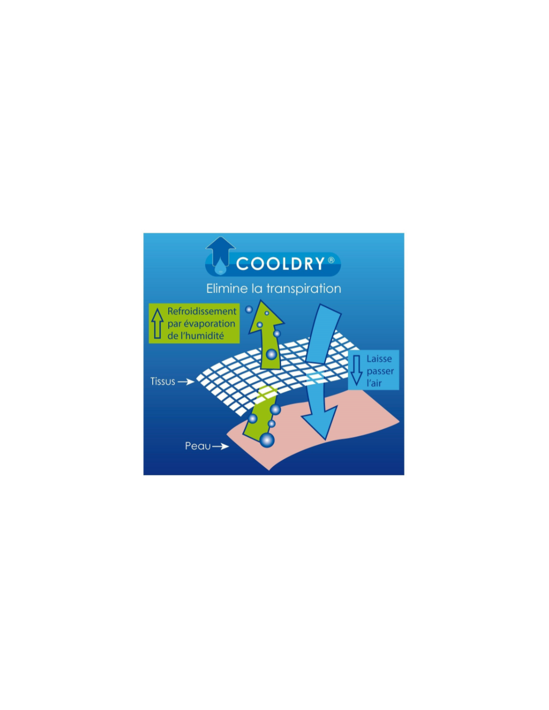 Le tissu Cooldry® permet de garder la peau au sec par temps chaud et sert d'isolant par temps froid.